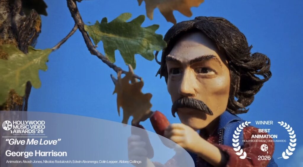 El video de animación stop-motion dirigido por Finn Wolfhard para «Give Me Love (Give Me Peace on Earth)» de George ha ganado el Premio Webby del Público en la categoría «Vídeo y Cine – Animación» en la 30° edición de los Premios Webby.